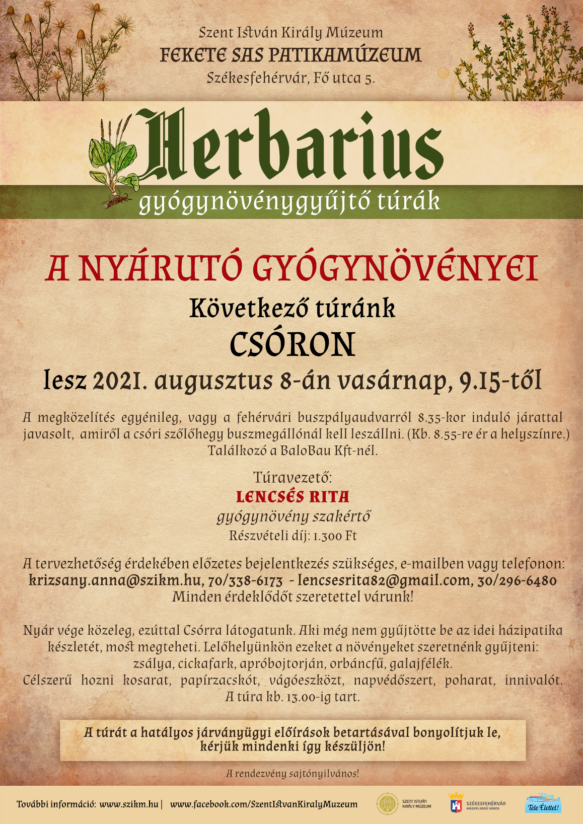 Túravezető: LENCSÉS RITA gyógynövény szakértő