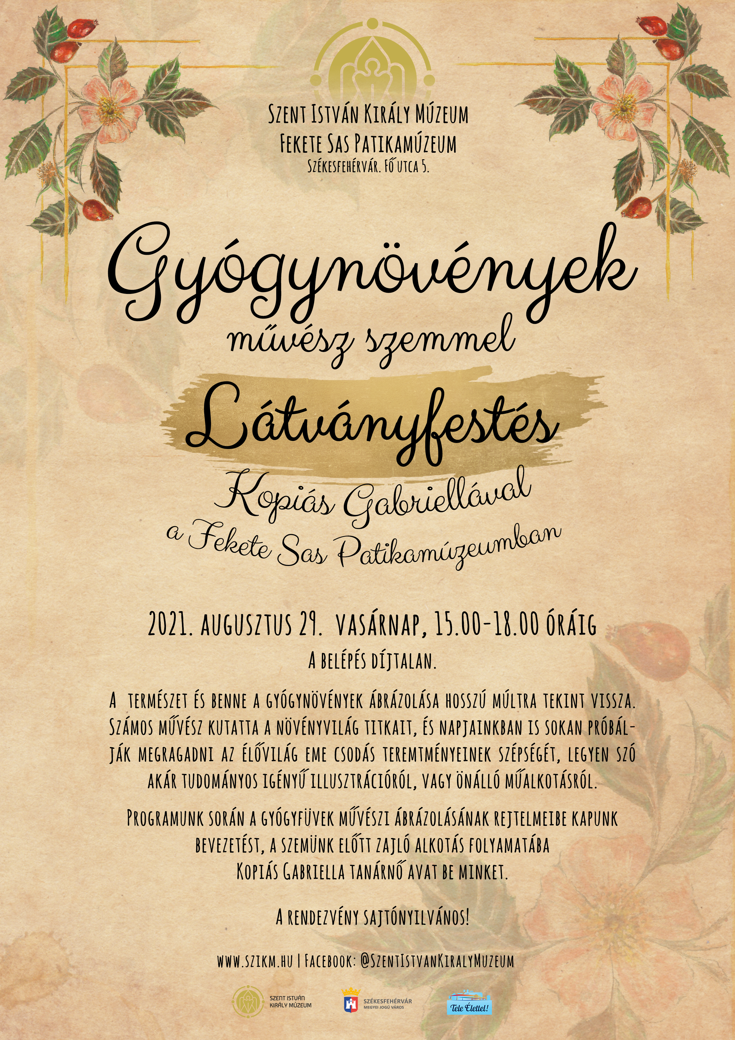 A természet és benne a gyógynövények ábrázolása hosszú múltra tekint vissza. Számos művész kutatta a növényvilág titkait, és napjainkban is sokan próbálják megragadni az élővilág eme csodás teremtményeinek szépségét, legyen szó akár tudományos igényű illusztrációról, vagy önálló műalkotásról. Programunk során a gyógyfüvek művészi ábrázolásának rejtelmeibe kapunk bevezetést, a szemünk előtt zajló alkotás folyamatába Kopiás Gabriella tanárnő avat be minket.