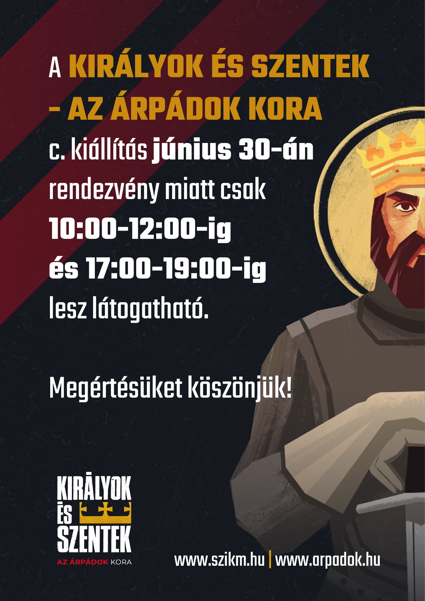 Felhívjuk kedves Látogatóink figyelmét, hogy a Királyok és szentek - Az Árpádok kora című kiállítás június 30-án, csütörtökön